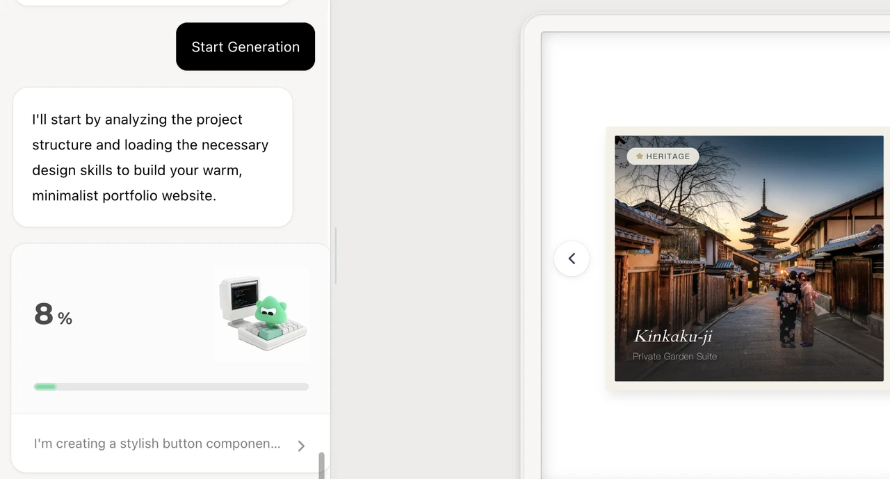 Forget dragging and dropping. With Wegic, you start by simply having a conversation. You meet Kimmy—Wegic’s GPT-4o powered assistant. And give her a brief just like you would to a human freelancer. Just type your vision: "Build a minimalist personal website for a freelance writer, including a portfolio grid, a client testimonial section, and a contact form."