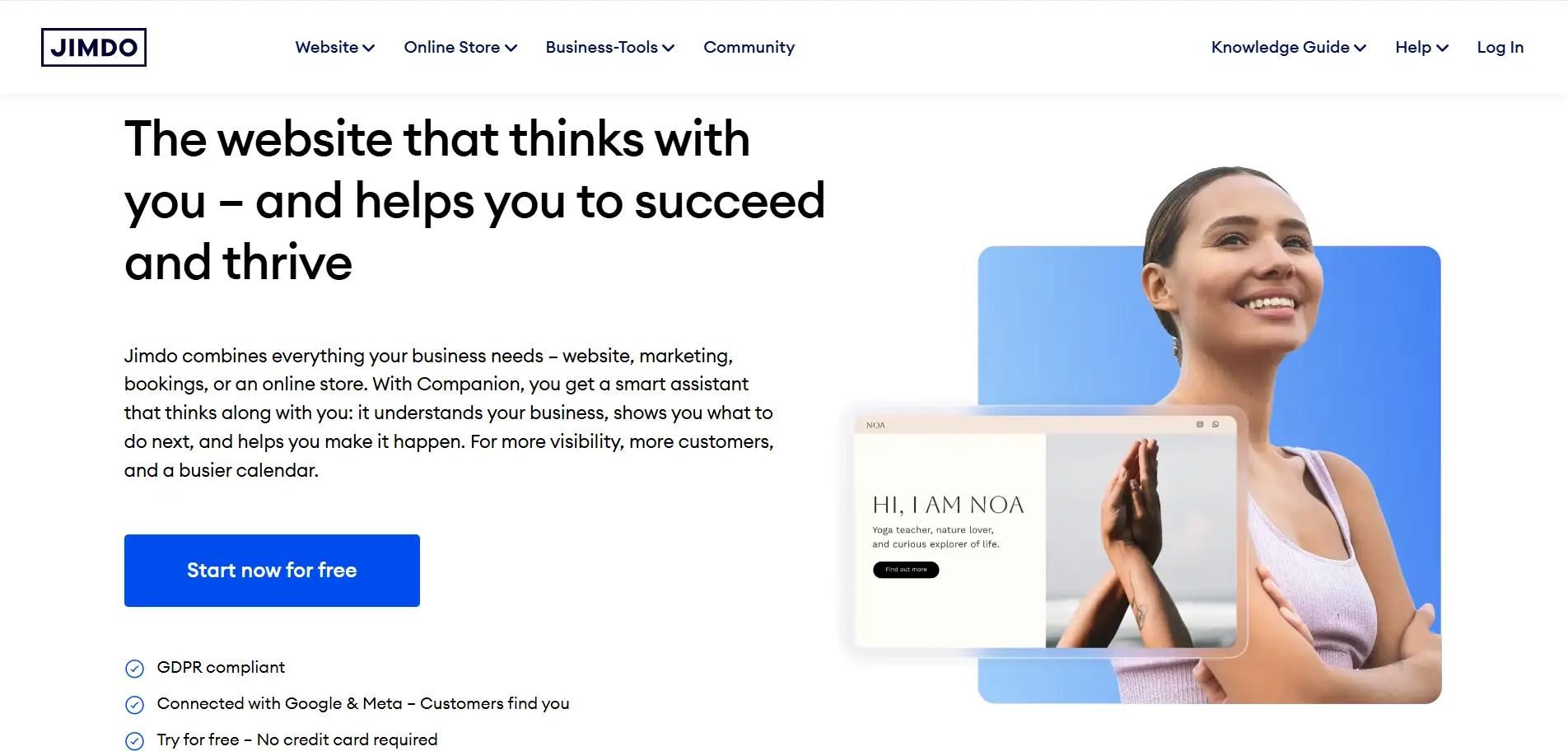 - Free plan gives you a subdomain (like "yoursite.jimdosite"), not a custom domain.